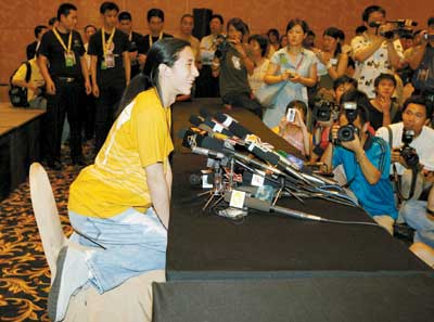遲到了將近3個小時的房祖明,在采訪接近結(jié)束的時候才趕到現(xiàn)場。在記者們苦等了許久正不知一肚子怨氣向何處爆發(fā)時,房祖明一上臺就向現(xiàn)場的所有記者作揖道歉,并連道三聲,“對不起,我遲到了!边@副知錯就改的大男孩樣子,讓記者的怨氣一下子煙消云散。