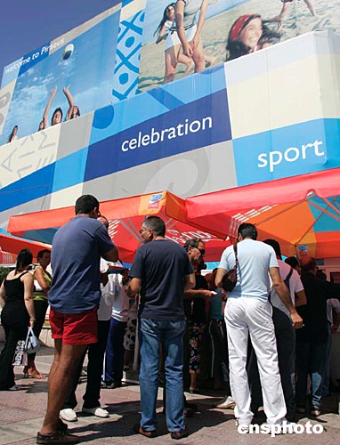 雅典奧運(yùn)會開幕在即,市民正在售票點(diǎn)排隊(duì)購買門票。據(jù)雅典奧組委官員透露,截至目前,奧運(yùn)門票依然有一半銷售不出去。中新社記者:張煒