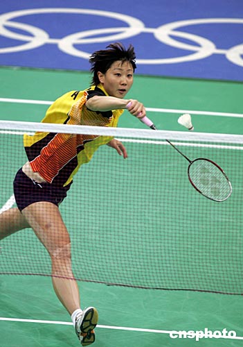 中國參加雅典奧運(yùn)會(huì)女子羽毛球單打比賽的選手周密,當(dāng)?shù)貢r(shí)間8月16日以2比0輕松戰(zhàn)勝保加利亞選手佩蒂婭,與隊(duì)友張寧、龔睿那一同進(jìn)入前四名。中新社記者:任晨鳴