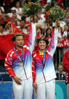 中新社雅典八月十九日電 悉尼奧運會冠軍張軍/高崚今天在奧運會羽毛球混合雙打決賽中苦戰(zhàn)九十三分鐘,以二比一戰(zhàn)勝英國選手羅伯森/埃姆斯,成為第一對在奧運會上成功衛(wèi)冕的羽毛球運動員。