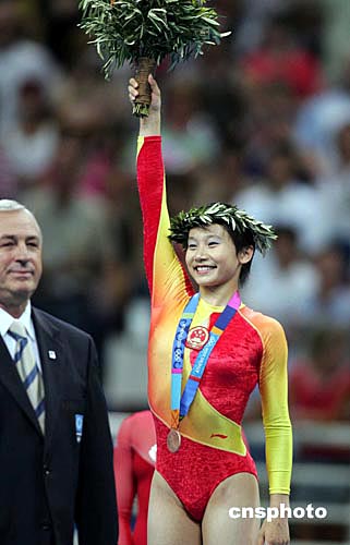 當(dāng)?shù)貢r(shí)間八月十九日晚,中國(guó)體操選手張楠獲得雅典奧運(yùn)女子體操全能銅牌。中新社記者:毛建軍