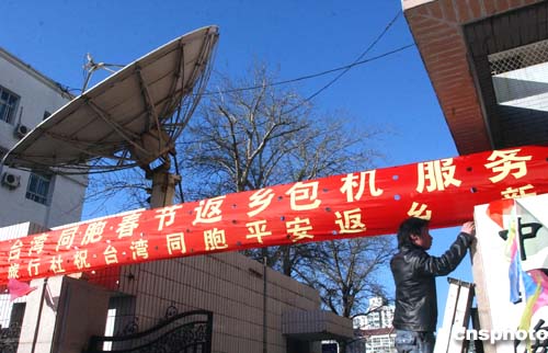 一月十一日,北京一家旅行社正為臺(tái)商春節(jié)包機(jī)開設(shè)的服務(wù)站做準(zhǔn)備工作。農(nóng)歷春節(jié)日益接近,在大陸的臺(tái)灣同胞春節(jié)返鄉(xiāng)包機(jī)問題再度浮上臺(tái)面。作者:韓藝冰