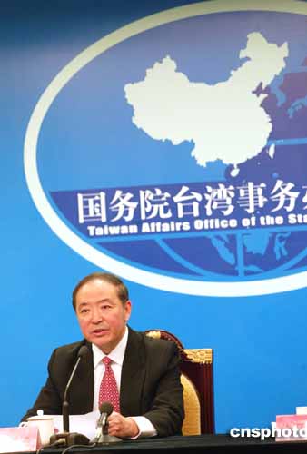 國(guó)臺(tái)辦經(jīng)濟(jì)局局長(zhǎng)何世忠,一月十二日在北京舉行的發(fā)布會(huì)上就兩岸包機(jī)發(fā)表五點(diǎn)意見。作者:滿會(huì)喬