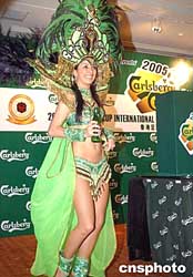 圖為森巴女郎為記者會(huì)助興。作者:譚達(dá)明