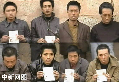 在伊被綁架的八名中國(guó)工人在錄像中展示護(hù)照號(hào)碼