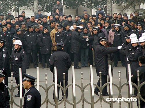一月二十一日上午九時(shí),河南許昌市中級(jí)人民法院對(duì)“中原涉黑第一案”——宋留根、馬獻(xiàn)洲、郝洪山特大涉黑團(tuán)伙案,進(jìn)行一審宣判。當(dāng)?shù)孛癖娋奂诜ㄍネ獾却袥Q。以宋留根為首的涉黑犯罪團(tuán)伙是五十年來(lái)河南最大的犯罪集團(tuán)。作者:胡珂