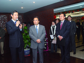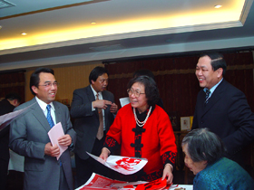 招待會(huì)上,來(lái)自京城百工坊的4位民間藝術(shù)家為來(lái)賓們現(xiàn)場(chǎng)制作了剪紙、泥人、面人和燙畫(huà)葫蘆,他們的精湛技藝和精彩表演體現(xiàn)了濃濃的中華特色和民族氣韻,引來(lái)客人陣陣喝彩。招待會(huì)自始至終洋溢著歡快友好的氣氛。