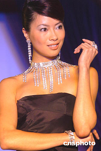 香港恒豐金業(yè)科技集團(tuán)與恒基兆業(yè)地產(chǎn)有限公司21日晚在香港國(guó)際金融中心舉行《豪宅金鉆耀全城》活動(dòng)﹐名模展示名貴珠寶鉆飾。中新社記者:趙振清