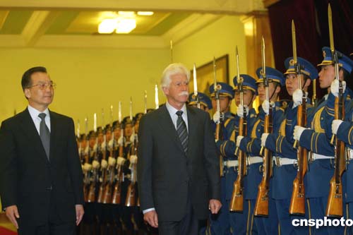 圖:溫家寶總理歡迎毛里求斯總理訪華