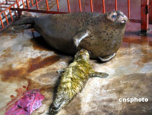 2005年1月24日早晨,在秦皇島海洋歡樂(lè)公園的水族館內(nèi),一只出生僅一天的小斑海豹全身覆蓋著土黃色的皮毛,在媽媽的產(chǎn)房?jī)?nèi)享受著母愛(ài)。據(jù)了解,這只可愛(ài)的小海豹在秦皇島市是人工喂養(yǎng)條件下降生的第一只小海豹,它的媽媽名叫“公主”,是6年前來(lái)到港城的,經(jīng)過(guò)幾年的人工喂養(yǎng),2004年10月份訓(xùn)養(yǎng)員發(fā)現(xiàn)溫順的公主懷孕了,在為其安排了一間單獨(dú)的產(chǎn)房后,1月23日早晨4點(diǎn)左右時(shí),工作人員聽(tīng)到公主奇特的叫聲,5點(diǎn)多時(shí),發(fā)現(xiàn)公主身邊多了一只小海豹和一堆胎盤(pán)。斑海豹別名海豹、港海豹,海豹科Phocidae,分布主要在渤海、黃海、東海也有發(fā)現,個(gè)別遠(yuǎn)達(dá)南海,屬?lài)?guó)家二級(jí)保護(hù)動(dòng)物。也是惟一在我國(guó)渤海沿岸繁殖的鰭腳類(lèi)動(dòng)物。學(xué)忠 攝