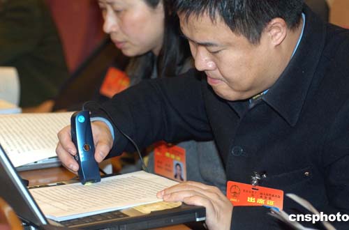 人大代表開會用電腦筆掃描報告