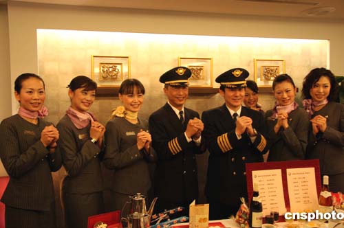 圖:臺灣“復興”航空首航臺商春節(jié)包機機組人員
