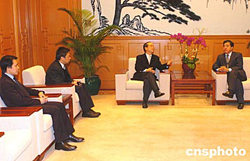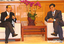 外交部駐港特派員楊文昌2月4日在香港外交部駐港公署會(huì)見(jiàn)香港民建聯(lián)立法會(huì)議員劉江華﹐就為去年印度洋海嘯災(zāi)難中受困港人提供協(xié)助及涉港領(lǐng)事保護(hù)等問(wèn)題進(jìn)行了交談。中新社記者:趙振清