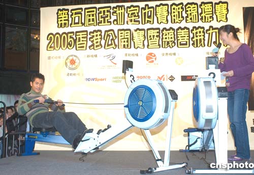 歌影紅星郭富城2月5日在香港出席《第五屆亞洲室內(nèi)賽艇錦標(biāo)賽暨慈善接力賽》記者會,獲委任為“亞洲劃艇之星”,并即場示范室內(nèi)賽艇運(yùn)動。作者:鄧慶樂