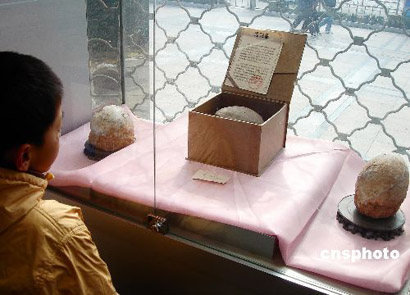 2月12日,安徽省淮北市,三枚恐龍蛋化石吸引了一名兒童。春節(jié)期間,安徽省淮北市某珠寶行為吸引顧客、促銷金銀首飾,在店內(nèi)展出屬于國家文物的三枚恐龍蛋化石,一些市民對商家行為的合法性提出了質(zhì)疑。作者:謝正義