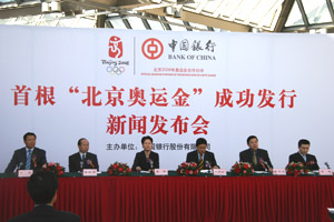中國(guó)銀行股份有限公司今日還代表發(fā)行方和經(jīng)銷方將本次發(fā)行的具有特殊意義的二十九號(hào)一百克的“北京奧運(yùn)金”捐贈(zèng)給了第二十九屆奧林匹克運(yùn)動(dòng)會(huì)組織委員會(huì)作永久保留,表達(dá)社會(huì)各界對(duì)北京二00八年奧運(yùn)會(huì)的祝福和期盼。