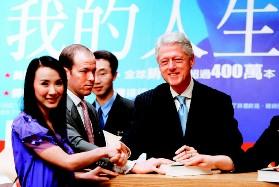 中新網(wǎng)3月1日電 來(lái)自TVBS消息,美國(guó)前總統(tǒng)克林頓的魅力讓臺(tái)灣美女藝人、主播也瘋狂,平常都有很多粉絲的美女蕭薔和主播侯佩岑,今天都成了克林頓的超級(jí)粉絲,很興奮的在簽書會(huì)上排隊(duì)等簽名,蕭薔還用英文向克林頓問好,別人都只握一次手,克林頓特別和蕭美人握了兩次手。