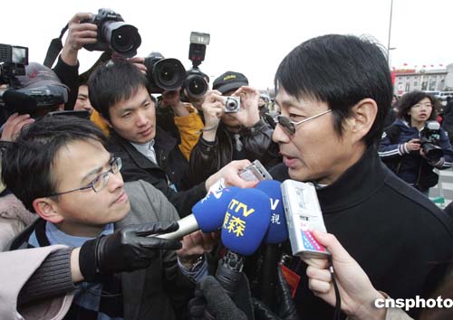 全國政協(xié)十屆三次會議三月三日下午在北京人民大會堂開幕,出席會議的著名影星陳道明在接受記者采訪時表示,不排除去臺灣發(fā)展的可能性,希望臺灣當(dāng)局對大陸演員更加開放。作者:毛建軍