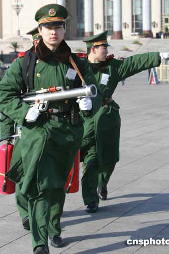 十屆全國(guó)人大三次會(huì)議三月四日在北京人民大會(huì)堂舉行預(yù)備會(huì)議,武警消防官兵在天安門廣場(chǎng)例行巡視,確保大會(huì)順利進(jìn)行。作者:湯彥俊