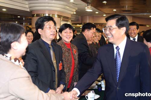 中新社北京三月四日電 中共中央總書記、國(guó)家主席、中央軍委主席胡錦濤今天下午看望了參加全國(guó)政協(xié)十屆三次會(huì)議民革、臺(tái)盟、臺(tái)聯(lián)界委員,并參加聯(lián)組會(huì),聽取委員們的意見和建議。他強(qiáng)調(diào),我們要堅(jiān)持以鄧小平理論和“三個(gè)代表”重要思想為指導(dǎo),繼續(xù)貫徹“和平統(tǒng)一、一國(guó)兩制”的基本方針和現(xiàn)階段發(fā)展兩岸關(guān)系、推進(jìn)祖國(guó)和平統(tǒng)一進(jìn)程的八項(xiàng)主張,繼續(xù)以最大的誠(chéng)意、盡最大的努力爭(zhēng)取和平統(tǒng)一的前景,同時(shí)絕不容忍“臺(tái)獨(dú)”,絕不允許“臺(tái)獨(dú)”分裂勢(shì)力以任何名義、任何方式把臺(tái)灣從祖國(guó)分割出去。