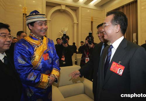 圖:溫家寶與甘肅代表一起審議政府工作報(bào)告