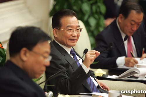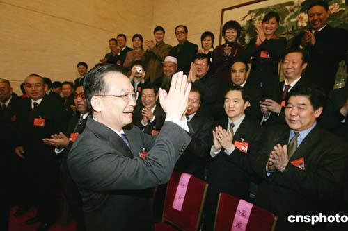 國務(wù)院總理溫家寶三月五日下午與出席十屆全國人大三次會議的甘肅代表一起審議政府工作報(bào)告。作者:毛建軍