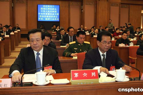 會(huì)議表決通過(guò),將關(guān)于接受江澤民辭去中華人民共和國(guó)中央軍事委員會(huì)主席職務(wù)的請(qǐng)求的決定草案,提請(qǐng)大會(huì)表決。