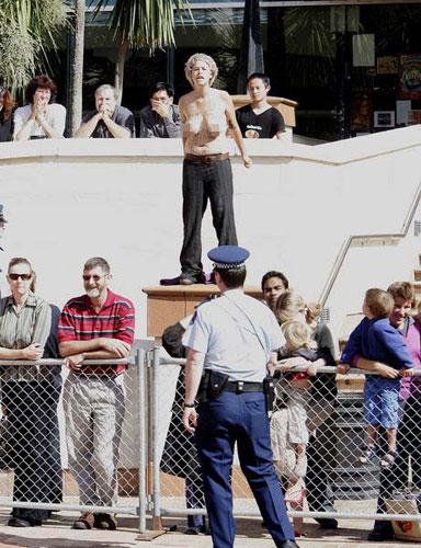 查爾斯王子在人群中間走來走去的時候,一名當?shù)貗D女突然脫下上衣,露出胸部所寫的一行字:“把殖民地的恥辱從我乳房上移走”。先前不久,即查爾斯王子抵達新西蘭之后不久,就有一名懷抱孩子的婦女當眾露胸,表示對查爾斯的抗議。該婦女很快就被警察帶走,目前已經(jīng)以擾亂社會秩序罪遭到起訴。