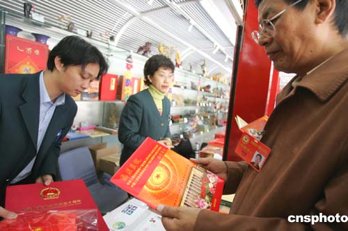 全國政協(xié)十屆三次會議十一日休會半天,一位政協(xié)委員在駐地賓館選購“兩會”首日封及各類紀(jì)念郵票。作者:湯彥俊