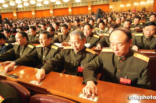 圖:解放軍代表按表決器通過反分裂國家法草案