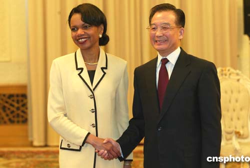 溫家寶在會見賴斯時說,“您是春分時節(jié)來訪,春分是播種的季節(jié),希望您的訪問為中美友誼播下新的種子!