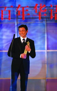 “中國電影百年百大演員”中已故明星張國榮和梅艷芳也位列其中,分別由黃百鳴、劉培基代為受獎。在接受“百大演員”獎座時,被主持人稱作“性格影帝”的葛優(yōu)也用他具“性格”的感言回報:“感謝華語電影傳媒大獎的評委會,感謝南方都市報,再見!”這句出人意料的“再見”讓人對葛氏冷幽默不禁報以掌聲和笑聲。