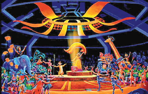 旅客亦可坐在一個容納二千二百人,以及有三百六十度觀景的劇院內欣賞另一出歌舞劇“獅子王慶典”,八十五名演藝人員會在每天八次,每次三十分鐘的演出中,將《獅子王》的故事表演發(fā)揮得淋漓盡致。在歌舞劇中,旅客可聽到由Elton John演唱的“Can You Feel The Love Tonight?”,以及其它《獅子王》的經(jīng)典金曲。