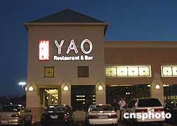 姚明在美國NBA發(fā)展如日中天,三月下旬,姚明父母開設的“姚餐廳”也在火箭隊大本營休斯敦西區(qū)一個購物中心開張。這個面積超過一千平方米,投資一百五十萬美元的餐廳包括中餐館和酒吧兩部分,裝修豪華,里面陳設了許多姚明的照片;餐廳設置了大屏幕電視,可觀看NBA現(xiàn)場直播,吸引了許多“姚明迷”。作者:余東暉