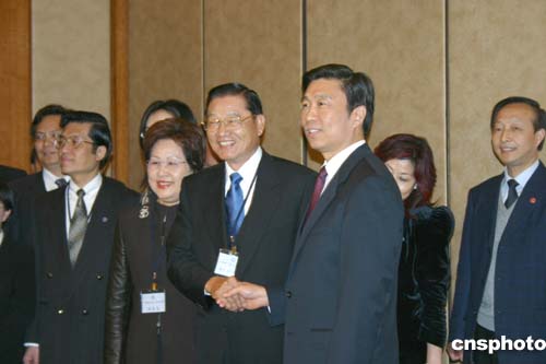 中新社南京三月二十九日電(記者陳旻)今晚,中共江蘇省委書記、江蘇省人大常委會(huì)主任李源潮在南京金陵飯店會(huì)見并宴請了剛剛抵達(dá)的國民黨參訪團(tuán)江丙坤一行。