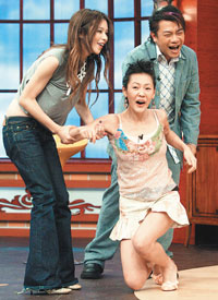 有趣的是,徐若瑄當(dāng)年曾在日本“火焰大挑戰(zhàn)”里秀過國際標(biāo)準(zhǔn)舞,小S術(shù)業(yè)有專攻,也曾苦練過國標(biāo)舞,還參加過觀摩賽,當(dāng)場興起拉著蔡康永在徐若瑄面前秀一段,沒想小S一個滑步往蔡康永胯下鉆去時,蔡康永拉不動她,當(dāng)場摔了一跤,裙擺飛揚(yáng)露出底褲,正當(dāng)大家以為小S不慎穿幫時,她說:“里面是安全褲,別想太多!