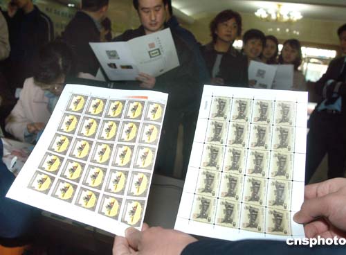 四月五日,新中國第一套地方版印花稅票《北京印花稅票之一北京胡同》在北京市各區(qū)縣地稅局向社會發(fā)售。此套印花稅票有九種面值,由北京市地方稅務(wù)局發(fā)行、國家郵政局郵票印制局印制,極具收藏價值。圖為北京市東城區(qū)地稅局工作人員展示新舊兩版印花稅票,圖右為新版印花稅票。作者:張宇