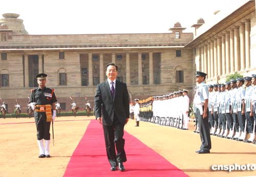 圖:印度總理為溫家寶到訪舉行歡迎儀式