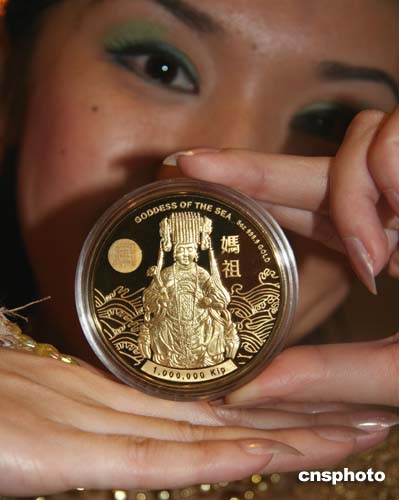 據(jù)介紹,媽祖紀念幣共七枚,各有不同的材質(zhì)與大小。其中最特別的是“風調(diào)雨順”金幣,全球限量發(fā)行九十九套,售價十六萬元新臺幣。
