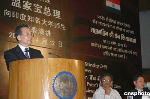 中新社新德里四月十二日電(記者齊彬)中國國務院總理溫家寶今天來到印度德里理工大學,向近千名印度知名大學的師生發(fā)表題為《攜手并進 共創(chuàng)未來》的演講,并回答了學生們的提問。