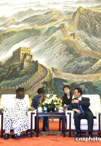 圖:吳邦國會見尼日利亞總統(tǒng)奧巴桑喬