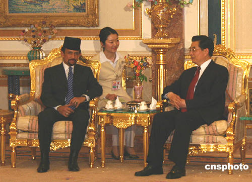 胡錦濤于當天抵達文萊首都斯里巴加灣,開始東南亞之行的首站訪問。哈桑納爾在王宮廣場為胡錦濤舉行了歡迎儀式。隨后兩國領(lǐng)導(dǎo)人舉行會談,就雙邊關(guān)系和共同關(guān)心的地區(qū)問題深入交換看法并達成廣泛共識。