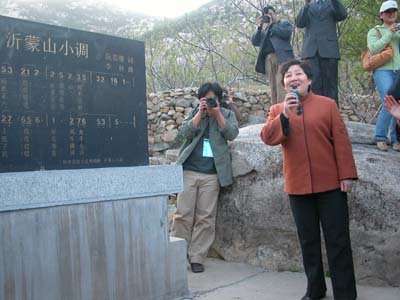 在《沂蒙山小調》誕生紀念地白石屋村,“魅力山東游——中國網絡媒體山東行”采訪團記者了解了《沂蒙山小調》誕生過程后,深受感動,在中共費縣縣委常委、宣傳部長李云凌領唱下,一同唱起《沂蒙山小調》,接受了一次傳統(tǒng)的革命教育。