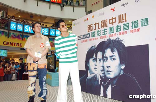 23日,香港電影《三岔口》在西九龍中心舉行主題曲MV啟播禮!度砜凇放錁(lè)創(chuàng)作人褚鎮(zhèn)東(左)及主角郭富城出席啟播禮。作者:譚達(dá)明