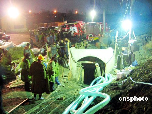 目前,事故現(xiàn)場成立了吉林省、吉林市、蛟河市三級(jí)搶險(xiǎn)指揮部,搶救工作正分兩方面同時(shí)進(jìn)行,一是堵塞吉安煤礦透水點(diǎn),同時(shí)組織騰達(dá)煤礦緊急抽水,營救被困礦工。