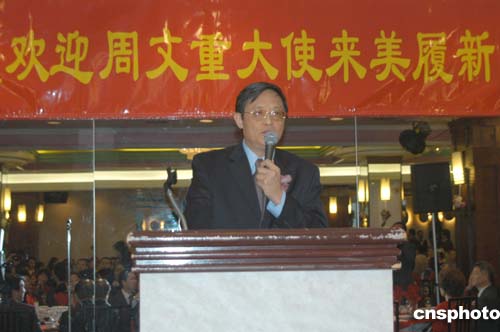三百多名僑界人士于美東時間四月二十四日晚歡聚一堂,盛情歡迎中國駐美大使周文重履新,這也是他第三次到華盛頓中國大使館任職。周文重大使登臺與華盛頓黃河藝術(shù)團(tuán)的成員合唱《我和我親愛的祖國》,場面感人。作者:余東暉