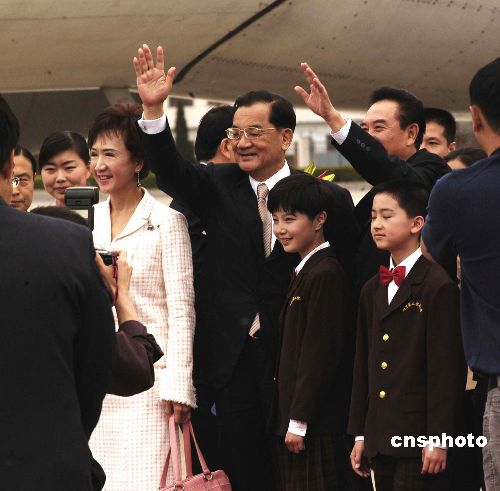 中共中央臺(tái)辦主任陳云林、中共北京市委副書(shū)記龍新民、在京臺(tái)商代表和北京各界代表列隊(duì)在停機(jī)坪熱烈歡迎連戰(zhàn)一行。