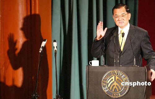 學(xué)生:您好,我是來(lái)自北京大學(xué)政府管理學(xué)院的碩士生,我們北大學(xué)子對(duì)您的大陸之行一直非常期待,記得在4天前當(dāng)您乘坐的飛機(jī)剛剛降落在南京的祿口機(jī)場(chǎng)時(shí)您曾發(fā)表感言,真是有一種相見(jiàn)恨晚的感覺(jué),剛才您也提到現(xiàn)今的大陸已經(jīng)跟您的記憶完全不吻合了,請(qǐng)問(wèn)在時(shí)隔將近60年的時(shí)間,當(dāng)您再踏上大陸的土地時(shí),您眼前見(jiàn)到的和您記憶及想象有什么最大的不同?謝謝。