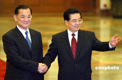 中新網(wǎng)4月29日電 中共中央總書記胡錦濤在今日(29日)下午與中國國民黨主席連戰(zhàn)會見時表示,我們要向世界表明兩岸的中國人有能力、有智慧解決彼此的矛盾和問題,共同爭取兩岸關(guān)系和平、穩(wěn)定、發(fā)展的前景,共同開創(chuàng)中華民族的偉大振興。