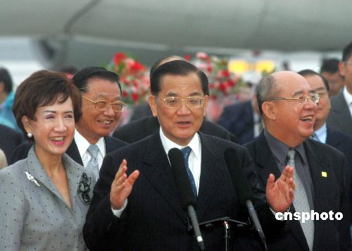 中新網(wǎng)5月1日電 中國國民黨主席連戰(zhàn)率國民黨大陸訪問團一行,在今日(1日)下午17時左右抵達上海浦東機場,他在小雨中發(fā)表簡短感言,連用兩次“非常地不敢當(dāng)”對在雨中久候的人們抱歉。